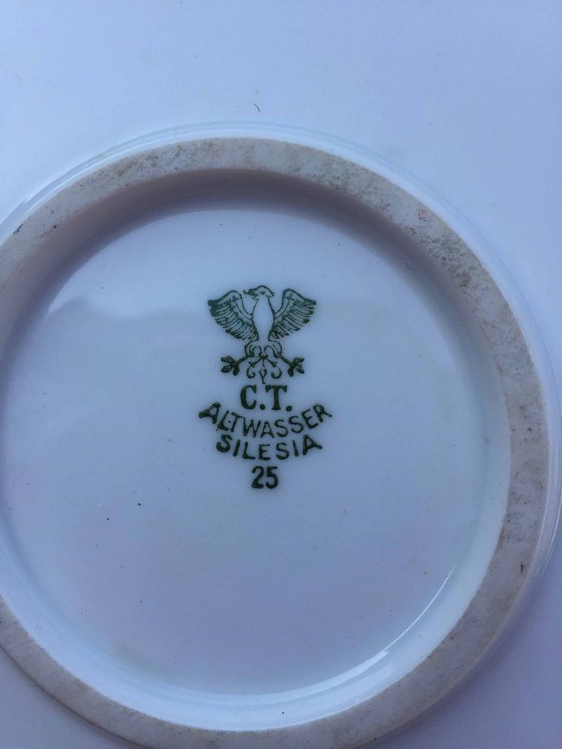 Decori in oro e scena mitologica realizzati in decalcomania. Silesia. Marca C.T-ALTWASSER. Anno di realizzazione 1925 Cm. 26 x 32