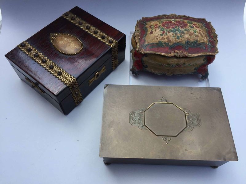 Una dell’800 in legno con decori in ottone ed acciaio; un’altra degli anni 20 in ottone martellato e, in origine, dorato; un’altra il legno, scolpita e dipinta. Tutte con qualche danno o mancanza