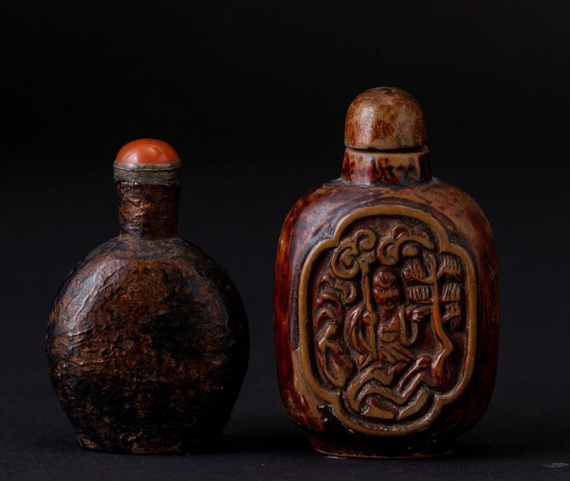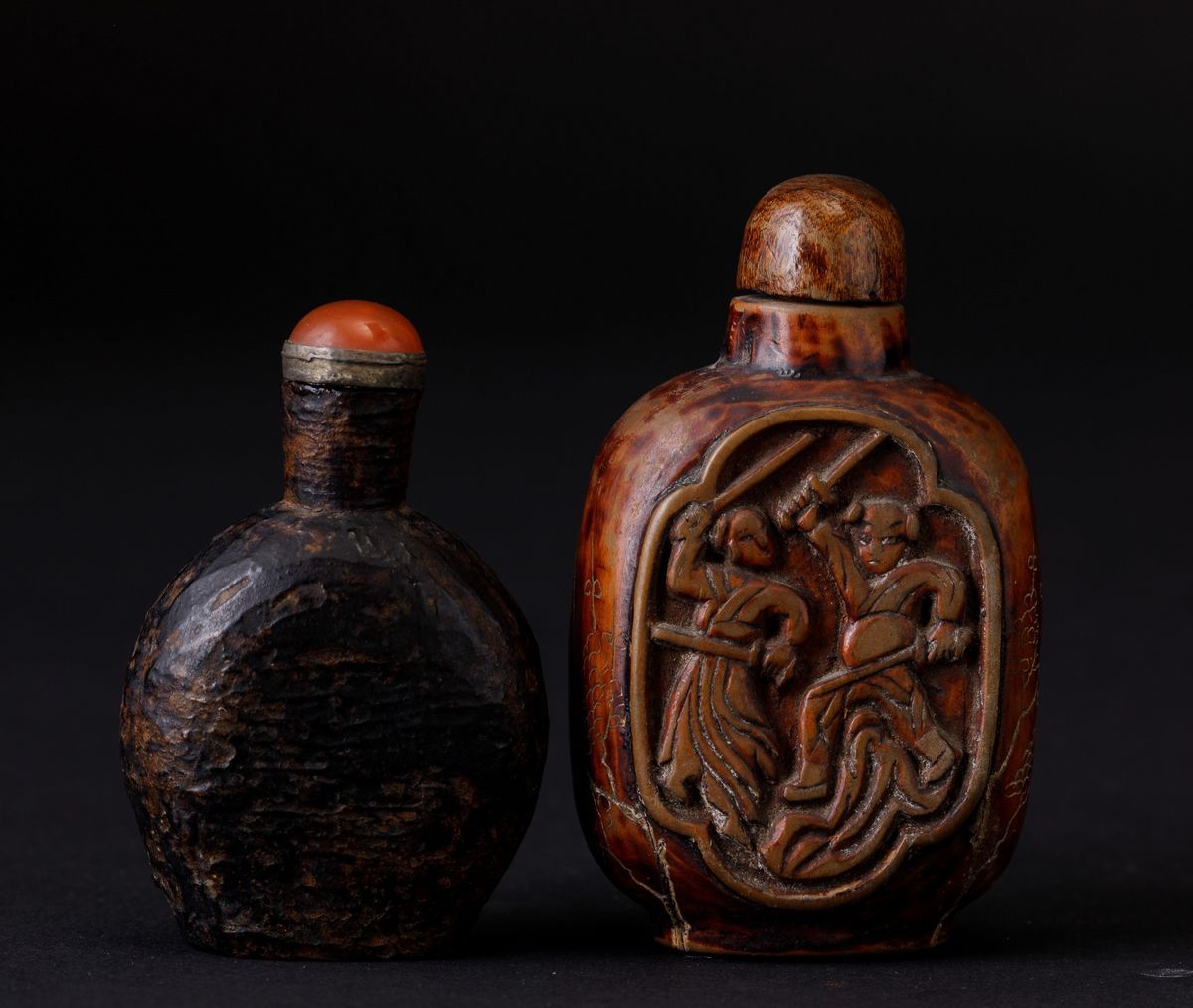 Due snuff bottles in legno, Cina, Dinastia Qing, XIX secolo