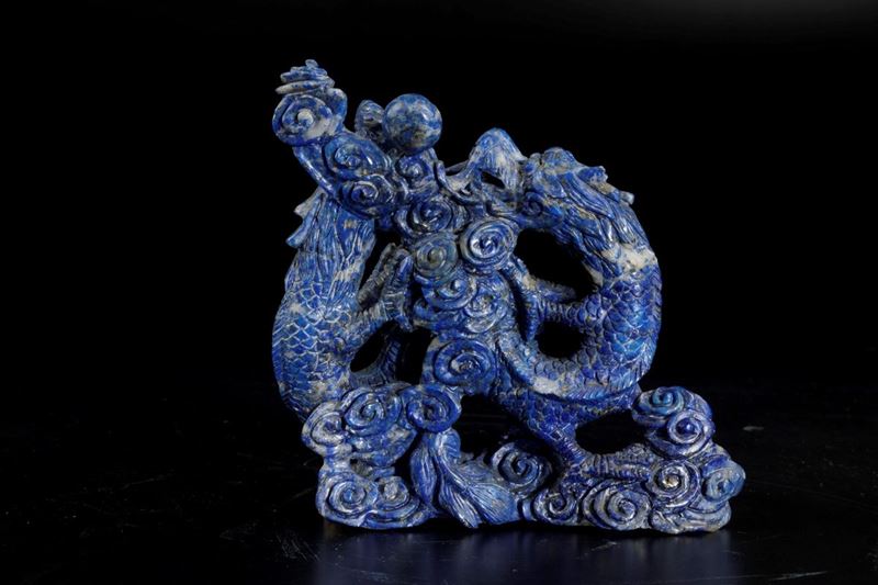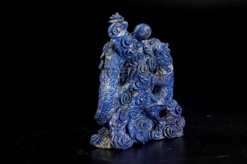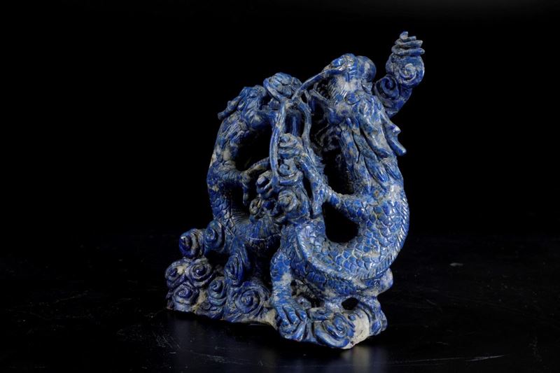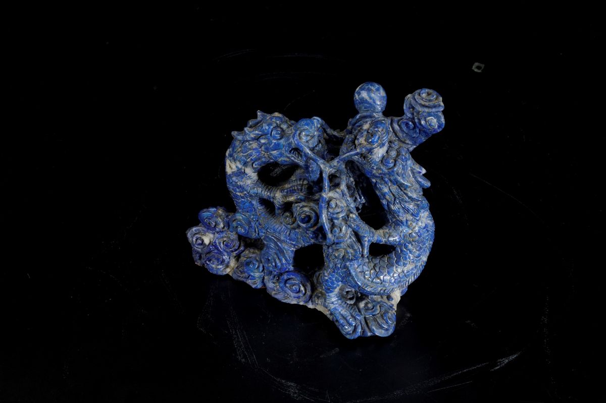 Gruppo scolpito in lapislazzulo con figura di drago, Cina, XX secolo