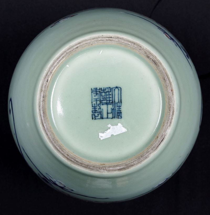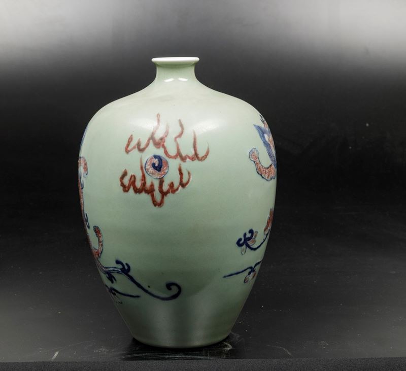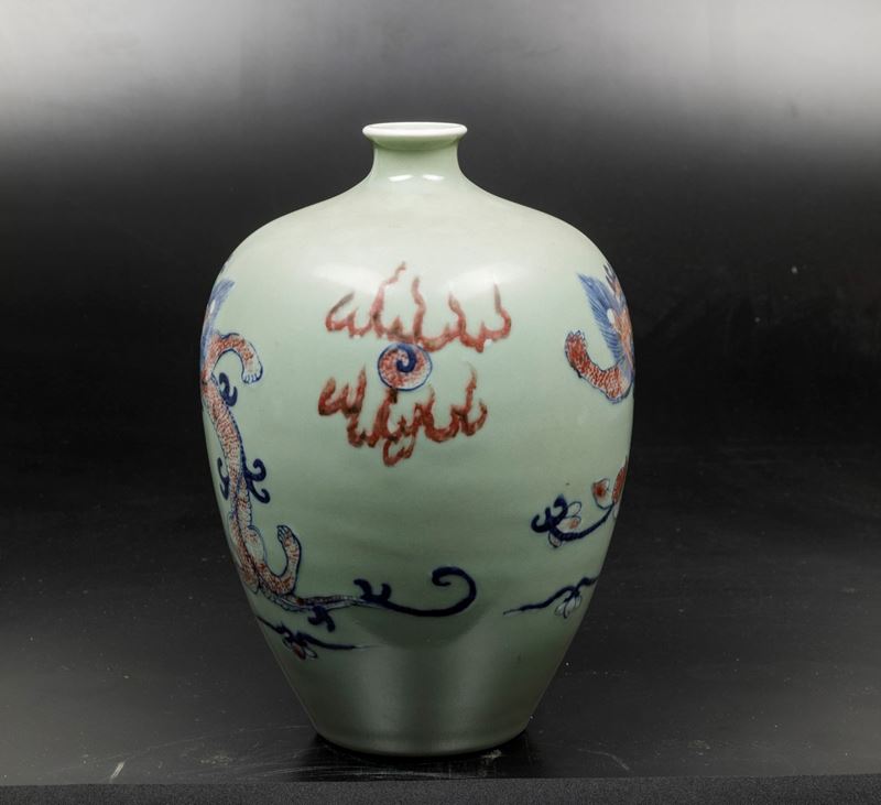 Lotto composto da vaso con coperchio in bronzo e due vasi in porcellana a smalti policromi, Cina, Dinastia Qing, XIX-XX [..]