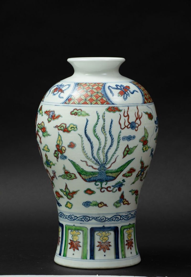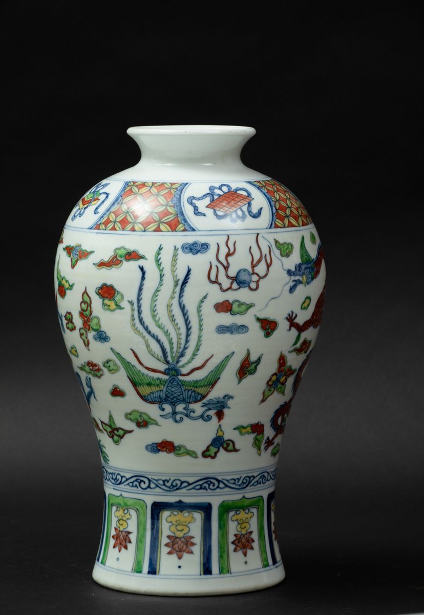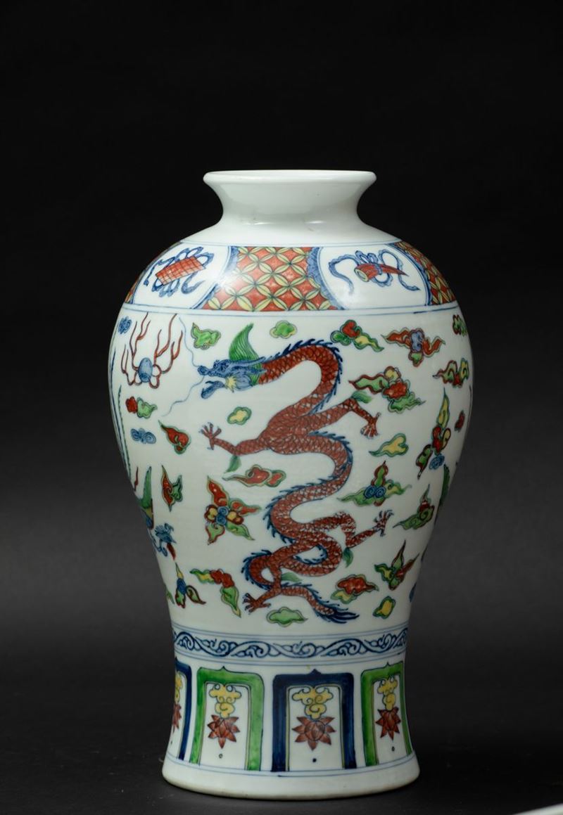Vaso in porcellana a smalti Ducai con draghi tra le nuvole e soggetti naturalistici entro riserve, Cina, Dinastia Qing, [..]