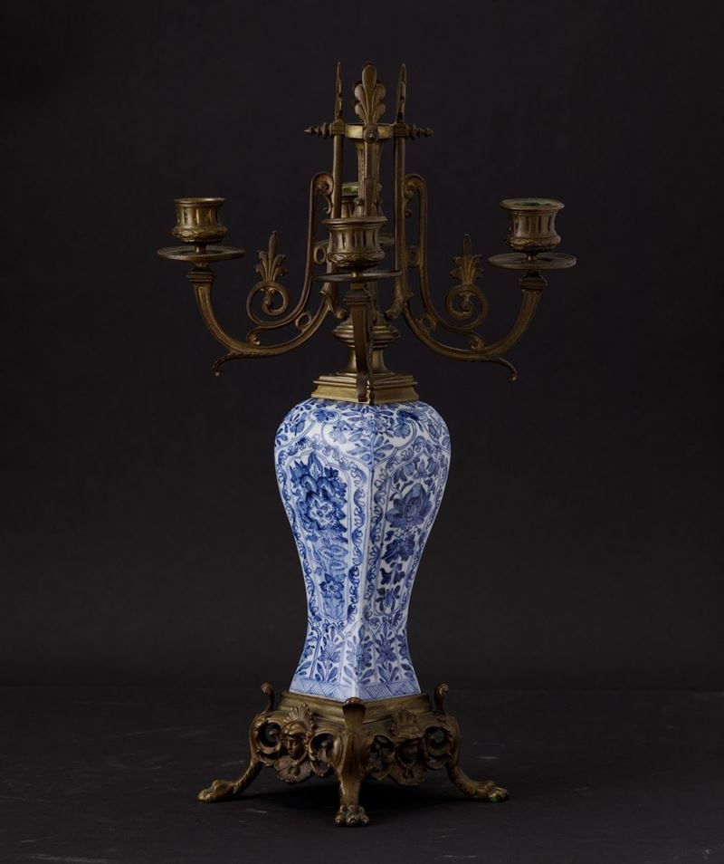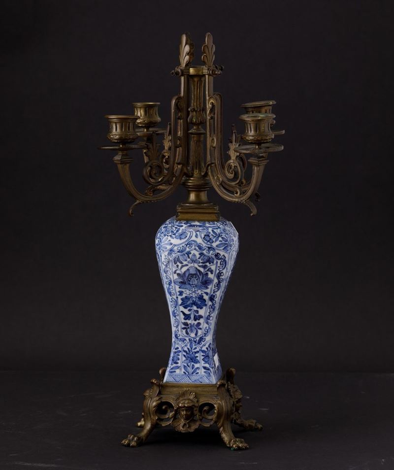 Vaso in porcellana bianca e blu con decori floreali entro riserve su montatura in bronzo dorato, Cina, Dinastia Qing, epoca [..]