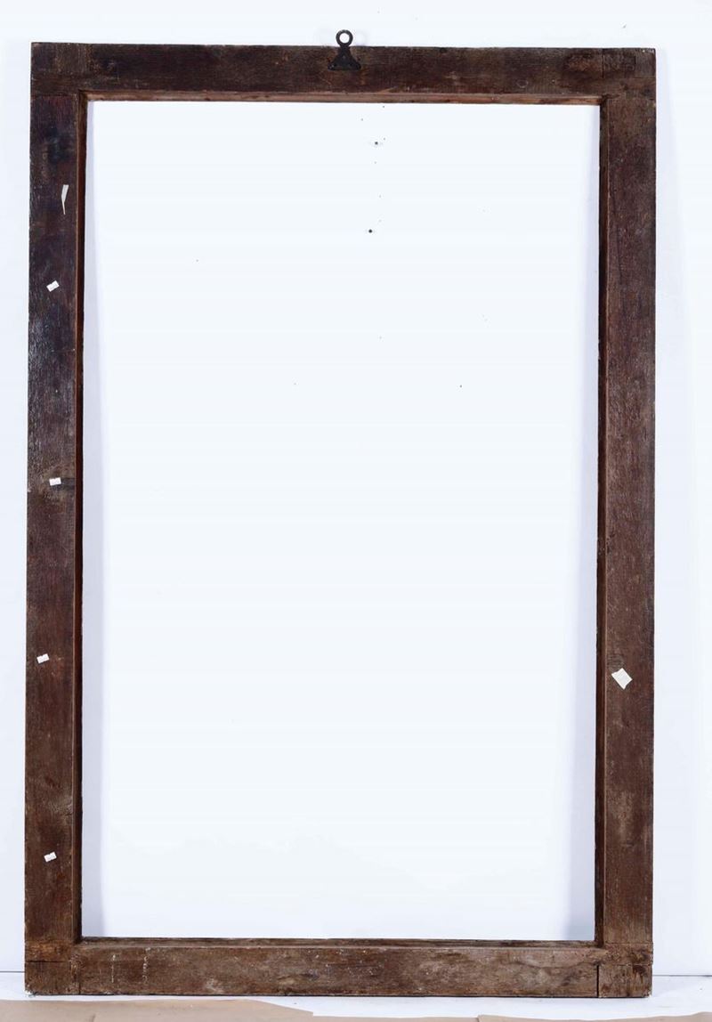 Cornice a cassetta in legno ebanizzato, dorato e inciso. Italia centrale XVII secolo
