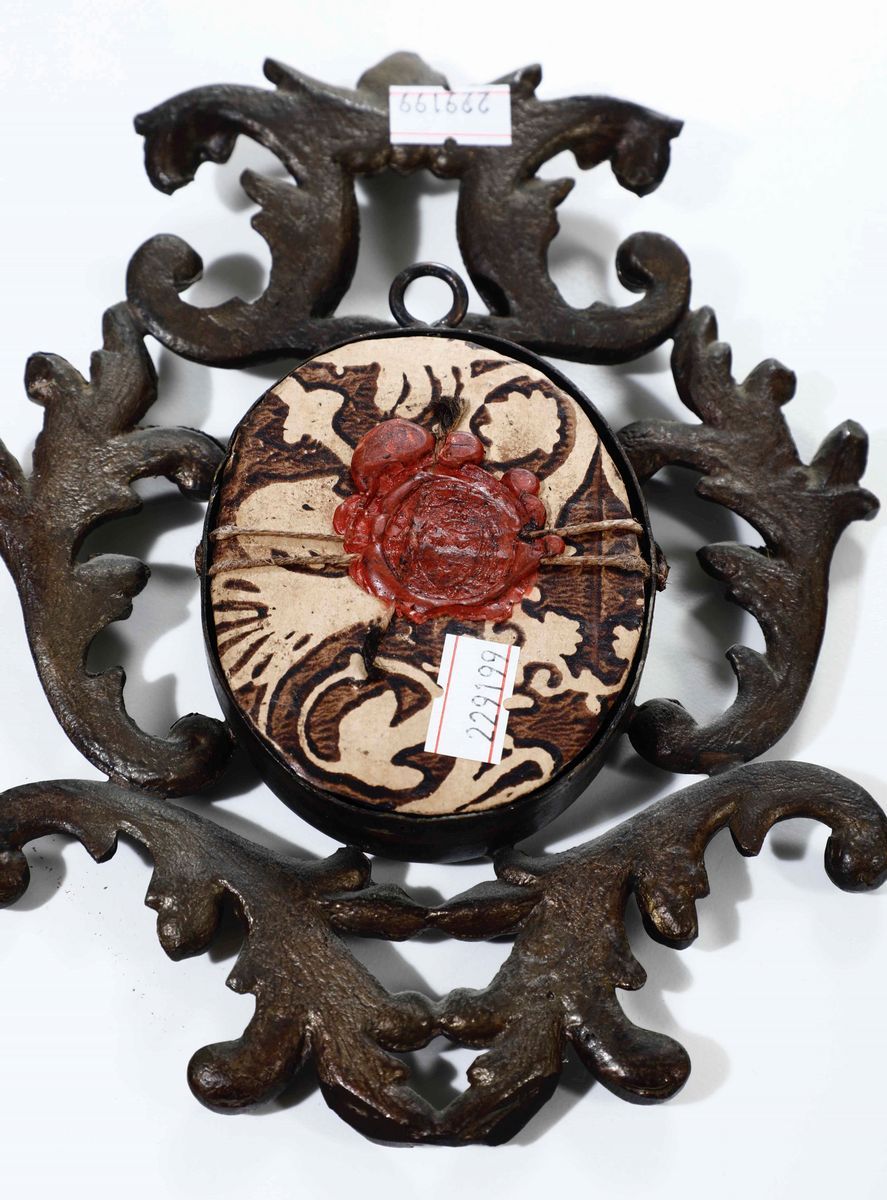 Cornice reliquiario Bronzo fuso e vetro XVIII-XIX secolo