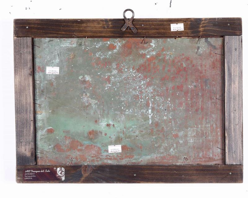 olio su rame, cm 21x31, cornice in legno intagliato e dorato