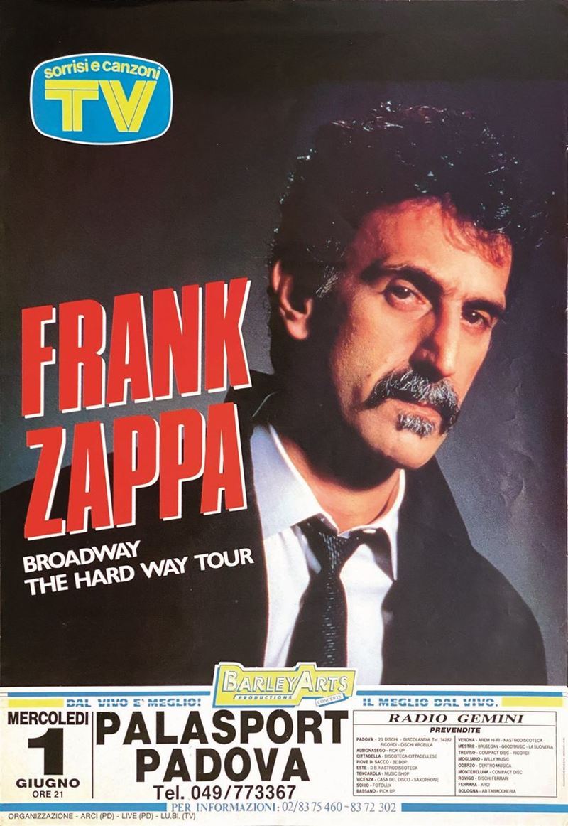 Lotto composto da 4 manifesti originali per concerti. Ciascuno cm 100x70. "James Brown", 1986. Qualità A-. "Europe The Final Countdown Tour", Qualità A-: lievi stropicciature marginali. "Prince Love Sexy", 1988. Qualità A-: piccoli difetti marginali. "Frank Zappa", 1988. Qualità A.