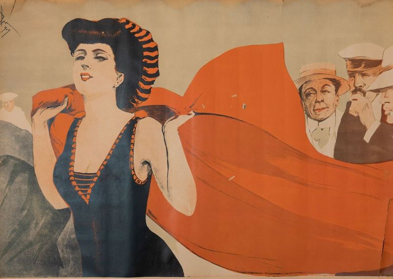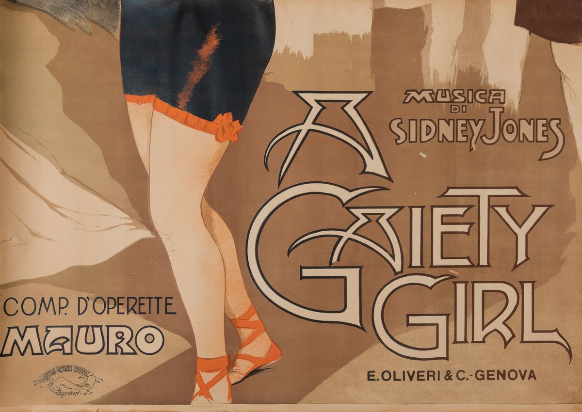 Compagnia d’Operette Mauro. Affisso litografico, 1909. Cm 100x70. Impresso da E.Oliveri & C. Genova. Qualità A-: in due parti.
