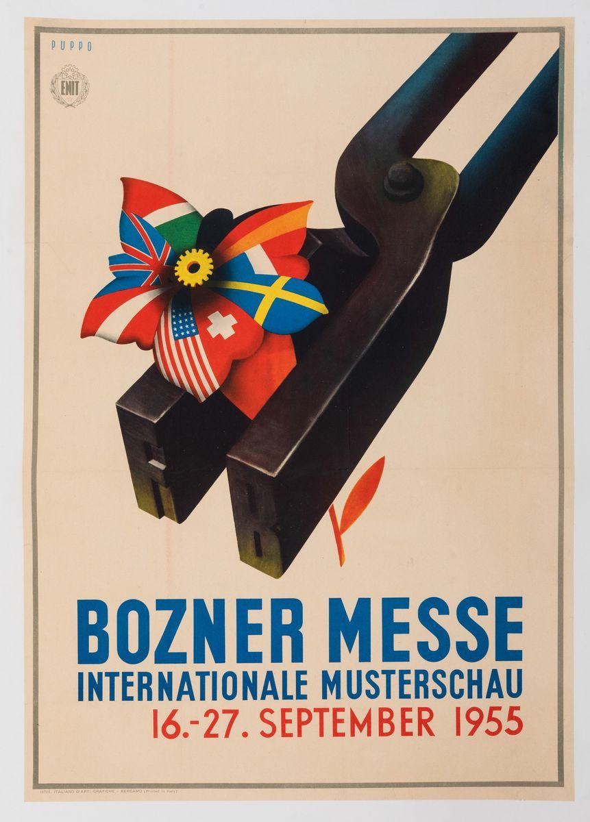Affisso litografico 1955. Cm 100x70. Impresso da ENIT, Bergamo. Telato. Qualità A-: piccolo restauro professionale ad uno strappetto nella parte alta.