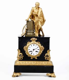 Pendola in bronzo dorato e patinato. Francia XIX-XX secolo