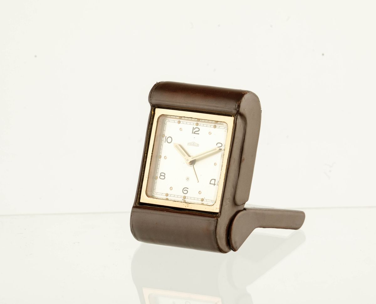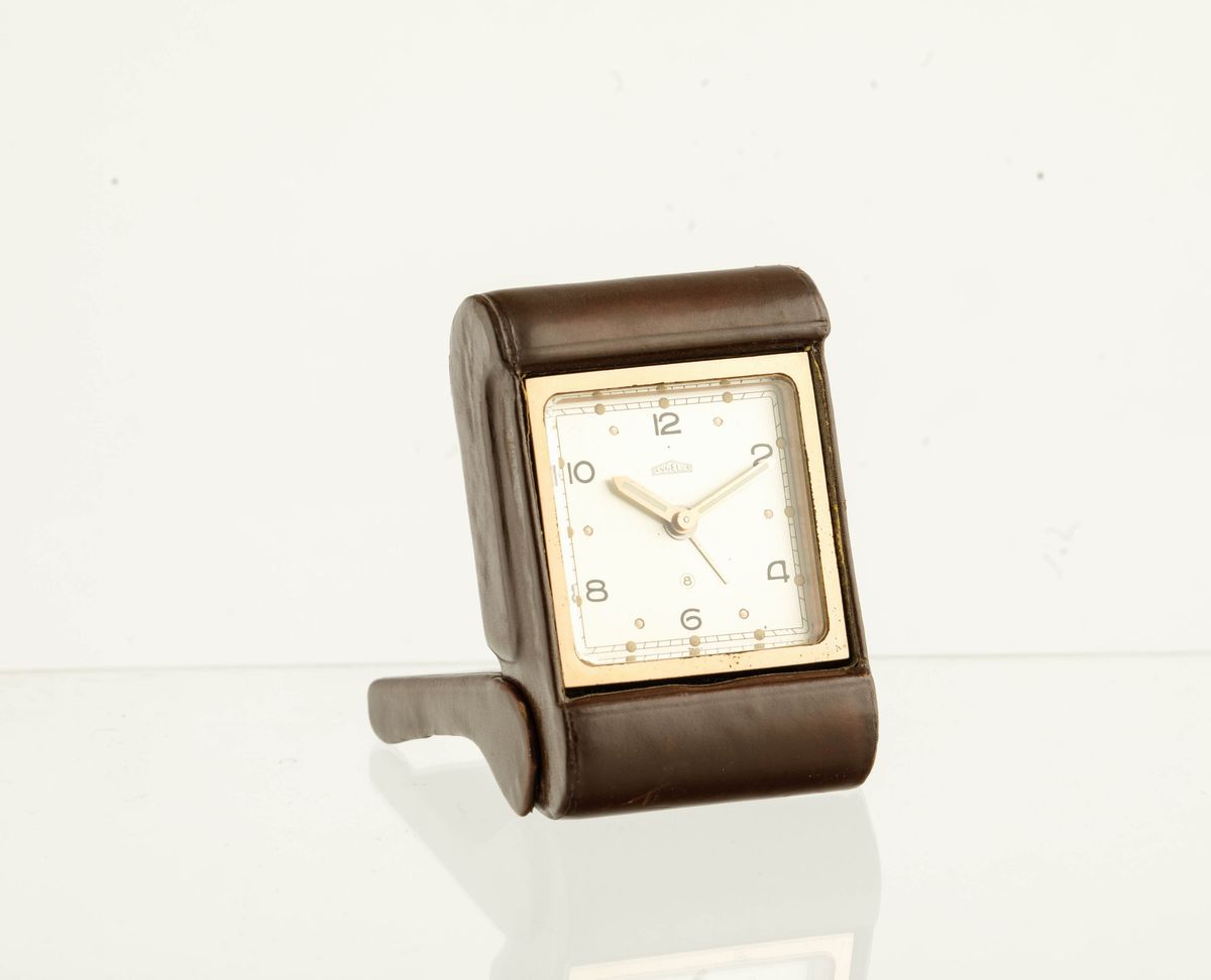 ANGELUS - Sveglietta da viaggio 8 giorni di carica con cassa in metallo dorato ricoperta di pelle