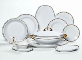Il servizio conta 66 pezzi ed è così composto: 34 piatti piani; 11 piatti fondi; 12 piatti da dessert; 1 zuppiera; 2 piatti da portata rotondi; 2 piatti da portata ovali; 1 insalatiera; 1 salsiera; 2 vassoietti