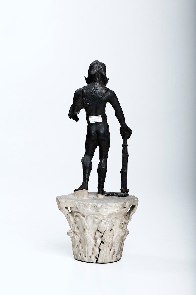 Scultura in bronzo in stile antico su capitello in marmo bianco