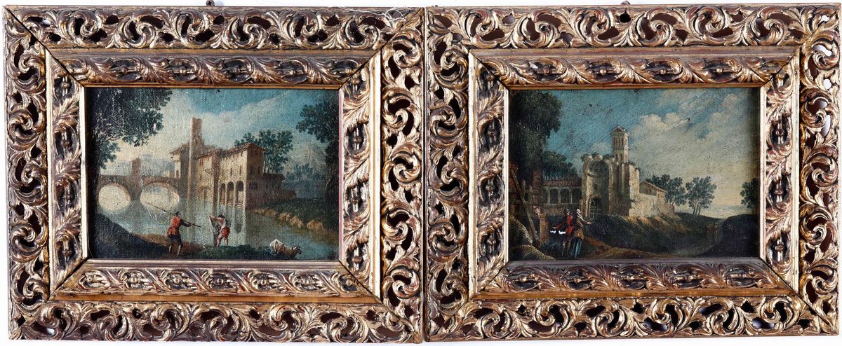 Scuola del XIX secolo Paesaggi con architetture e contadini