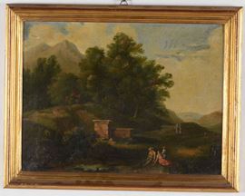 Scuola del XVII secolo Paesaggio con viandanti