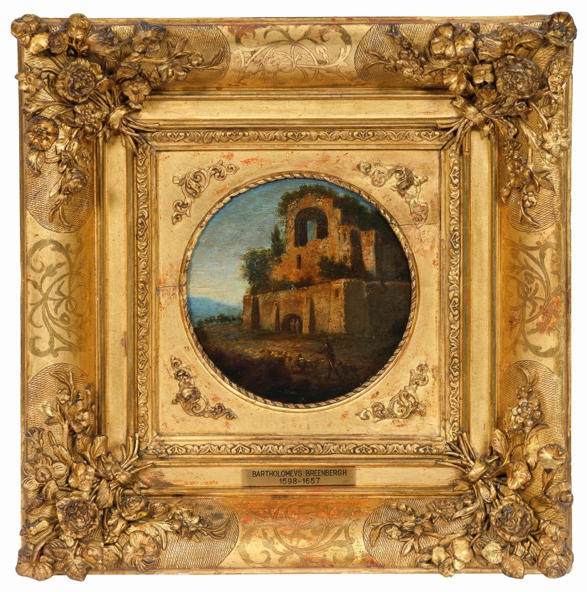 Artista fiammingo attivo in Italia nel XVII secolo Capricci con rovine e contadini