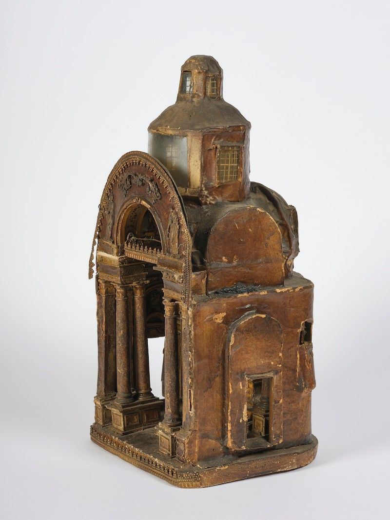 Interno di chiesa barocca. Modellino in papier machè dipinto e dorato. XVIII secolo