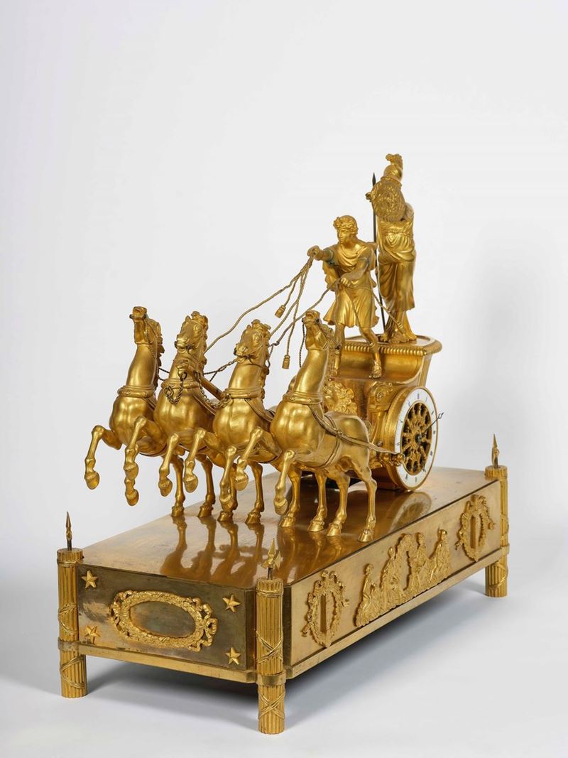 Il disegno di questo modello è del bronzista Jean-André Reiche (1752-1817) datato 1807 ed esposto alla Biblioteca Nazionale di Parigi. Molti esemplari a due cavalli sono stati eseguiti dal bronzista Claude Galle (1759-1815).