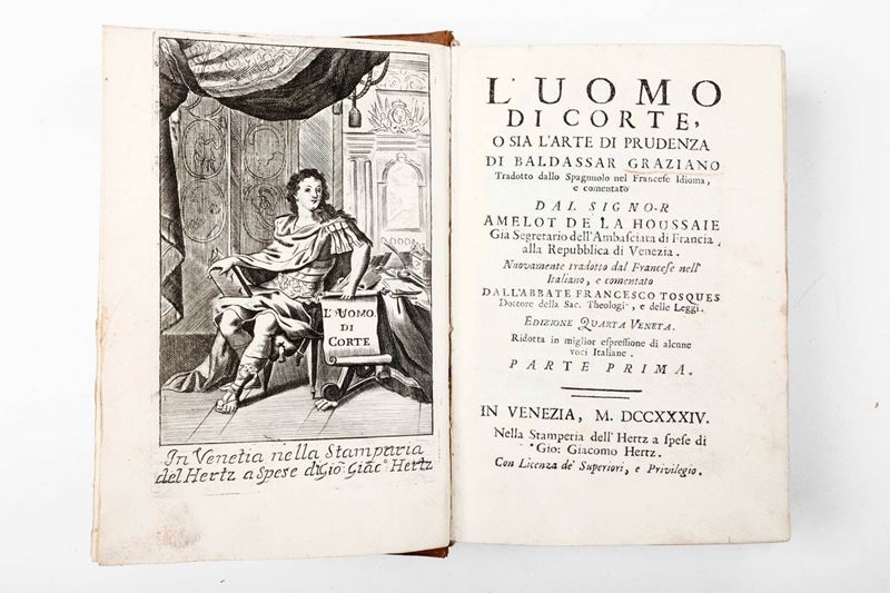 Graziano Baldassar l'uomo di corte o sia l'arte della prudenza...Venezia, Nella Stamperia dell'Hertz, 1734...Parti prima e seconda...