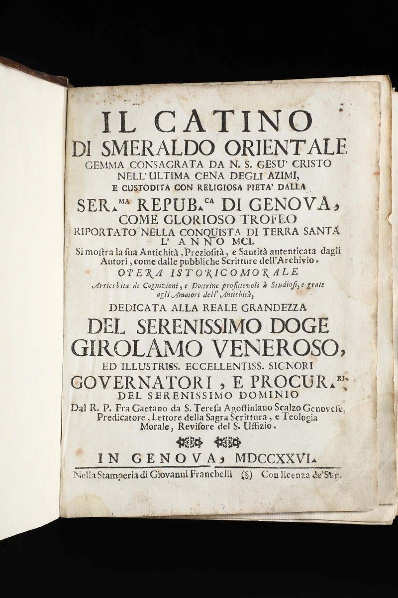 Gaetano da Santa Teresa Il catino di smeraldo orientale..Genova, Franchelli, 1726.