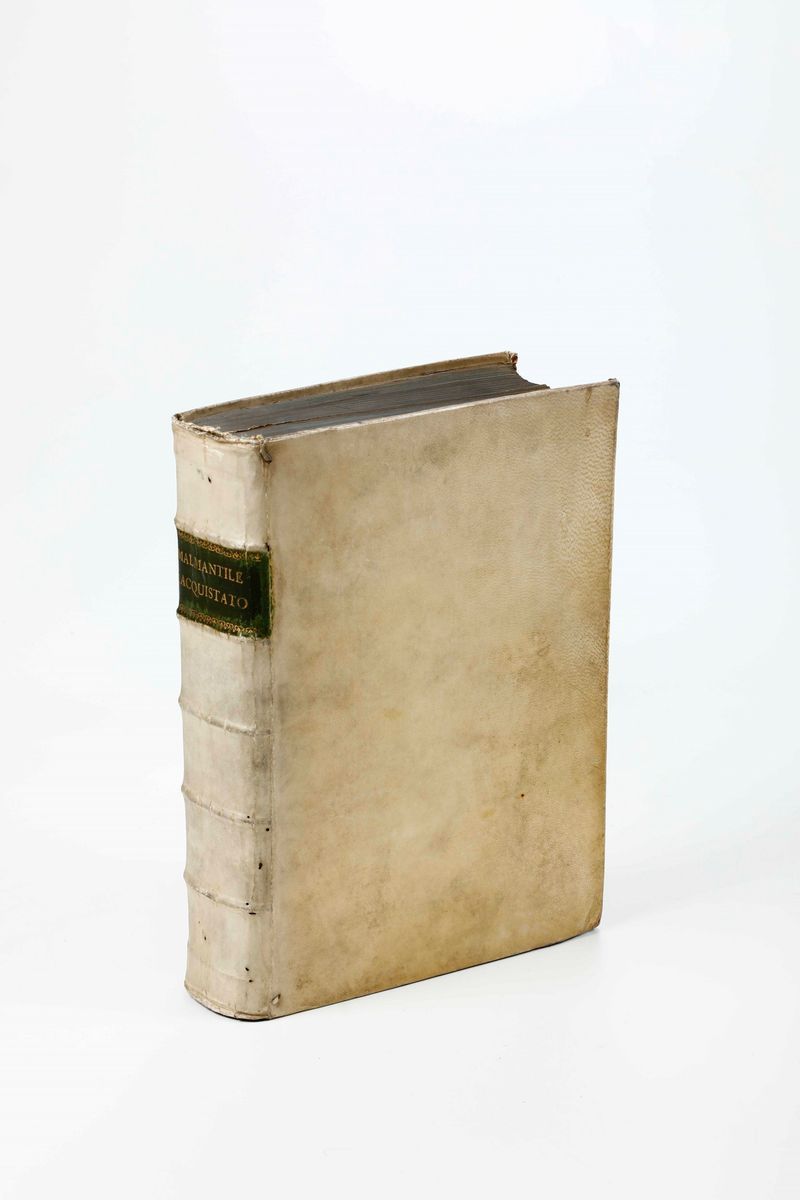 In-4°. Legatura in piena pergamena coeva. Bell'esemplare con antiporte incise da Francesco Zucchi e un ritratto ripiegato.