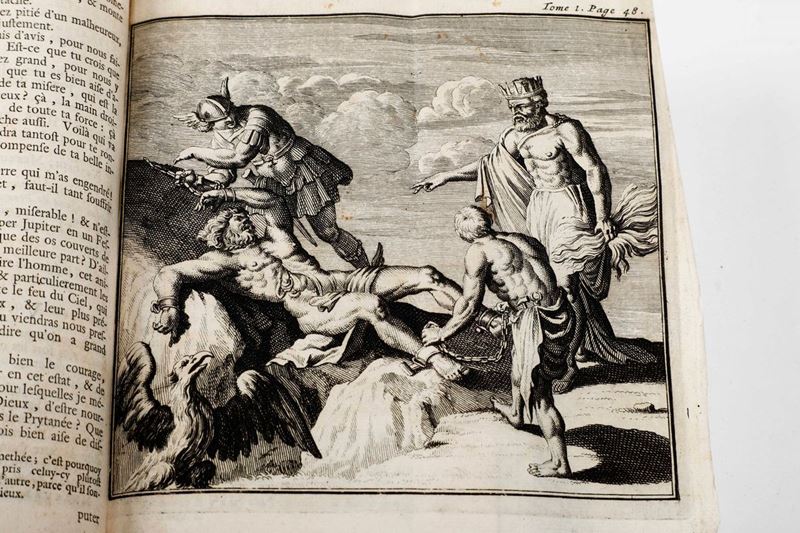 In-12°. Due volumi. Legatura in pergamena rigida (abrasioni). Antiporta inciso con ritratto di Luciano. Dodici tavole ripiegate fuori testo. Bell'edizione. Gore e fori di tarlo.