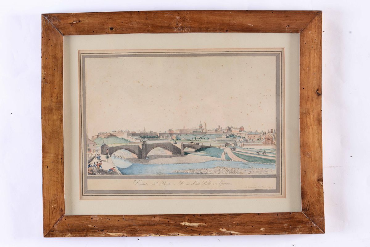 Piaggio, Giuseppe Veduta del lazzaretto di Genova e della veduta di Albaro - Veduta del ponte e Porta della Pilla in Genova...Genova in strada Luccoli, Ferdinando Ricci,1818 circa