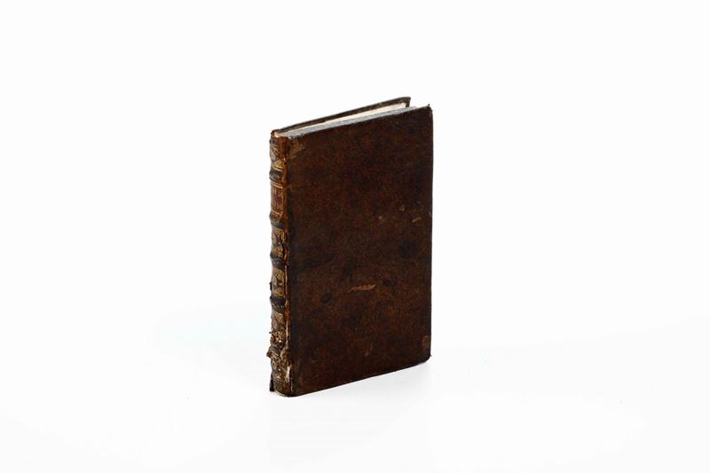In-8°. Legatura in pelle coeva (abrasioni). Fregi in oro e nervi al dorso. Grande impresa tipografica al frontespizio. Cerniera anteriore parzialmente staccata.