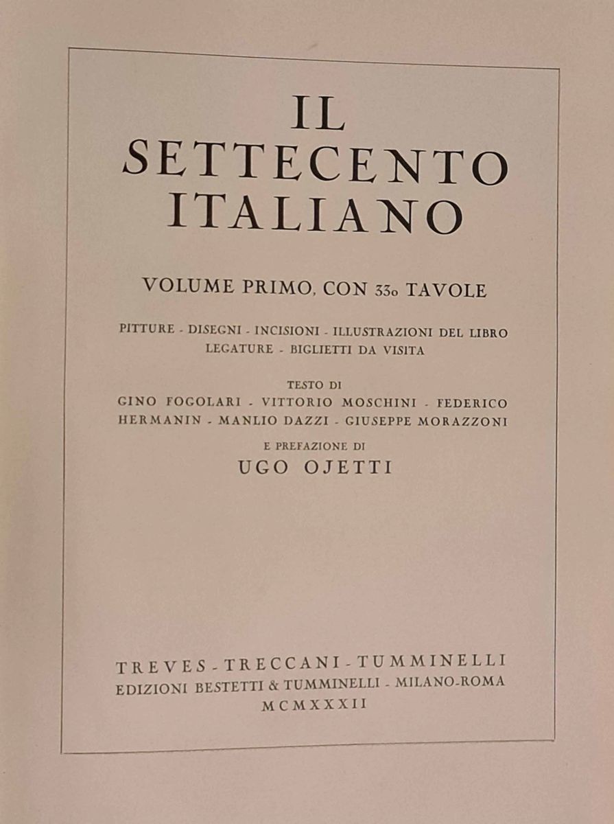 Scelte di libri d'arte,storia,letteratura Il settecento italiano (2 volumi), 1932