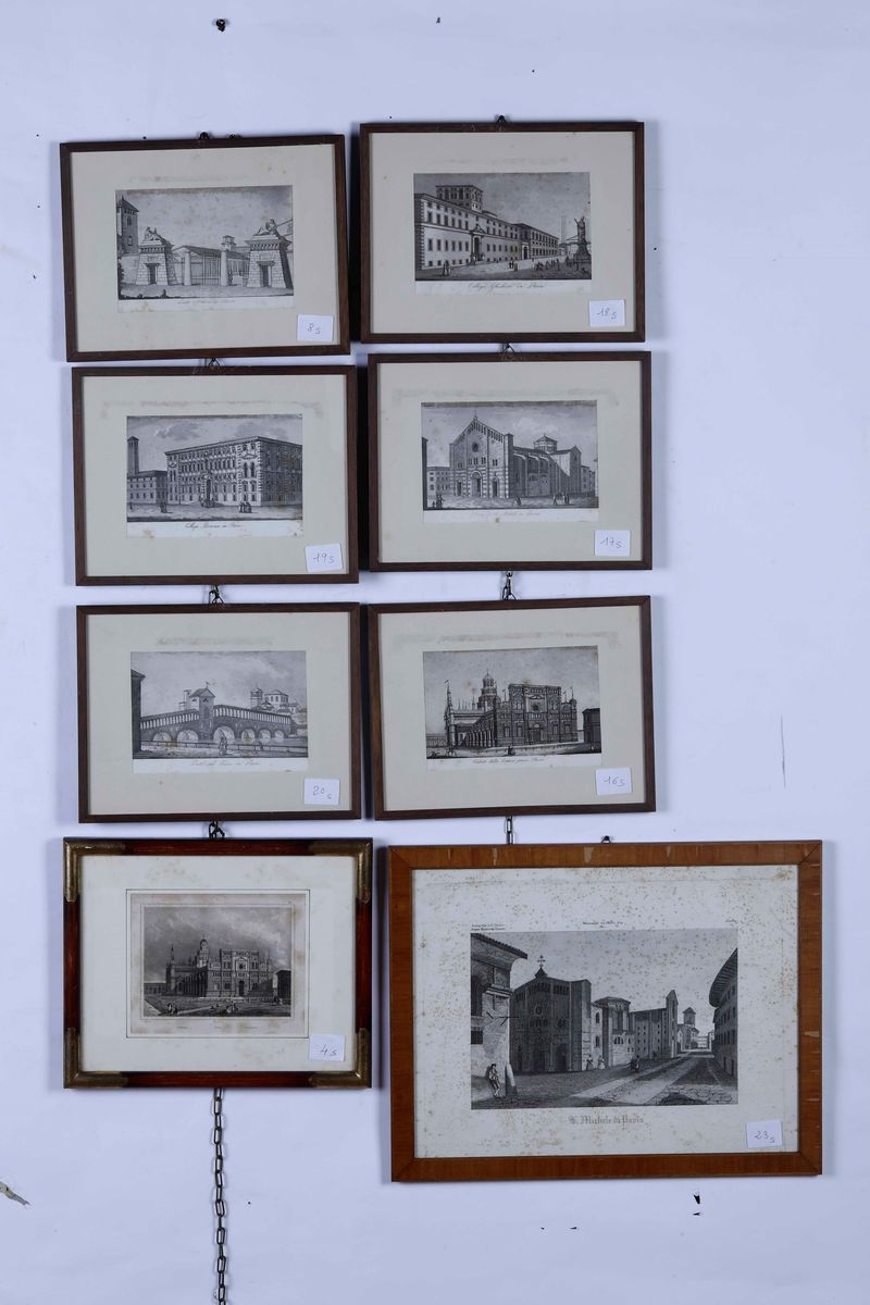 Serie di otto incisioni entro cornici, secolo XIX Pavia - incisioni