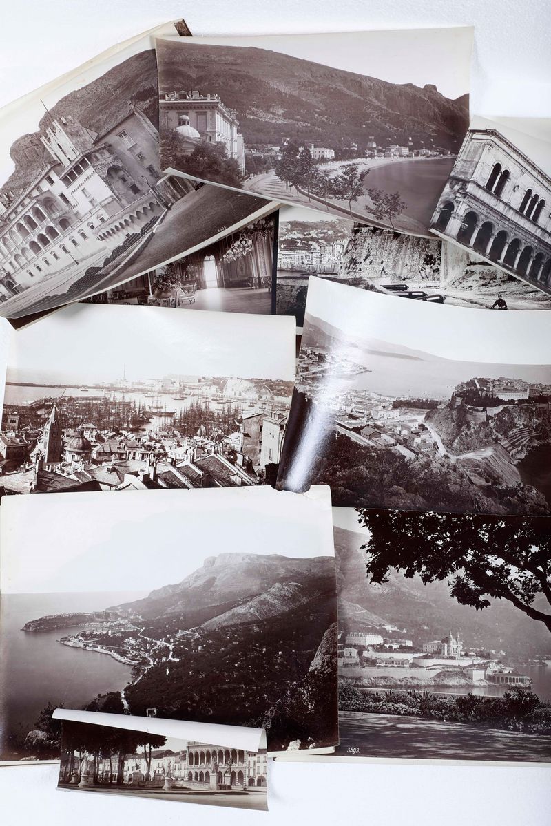 Undici stampe fotografiche fine XIX inizio secolo XX raffiguranti paesaggi di Montecarlo e Genova Principato di Monaco, [..]