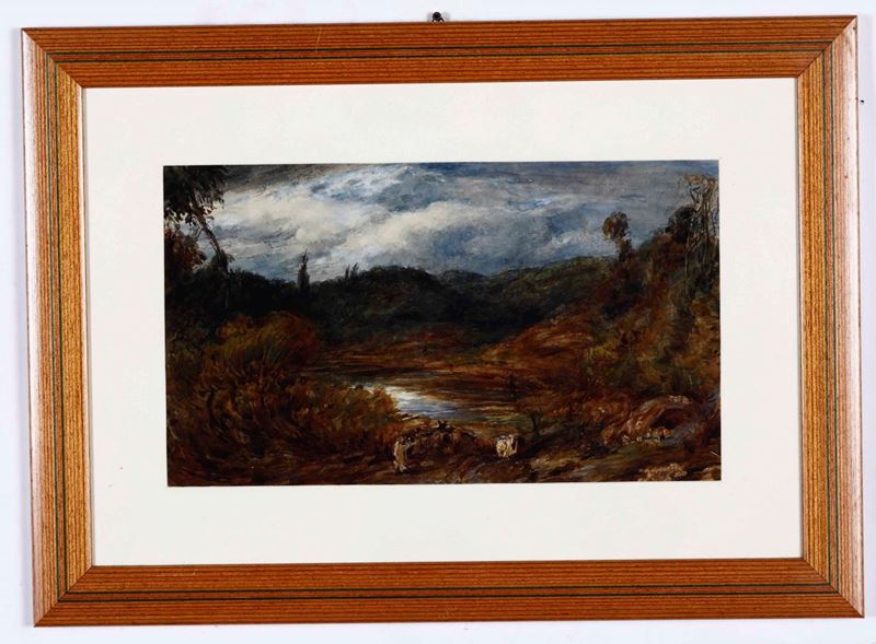 Paesaggio e altro dipinto firmato A.E. Marnis cm 20,5x36 e cm 26x34