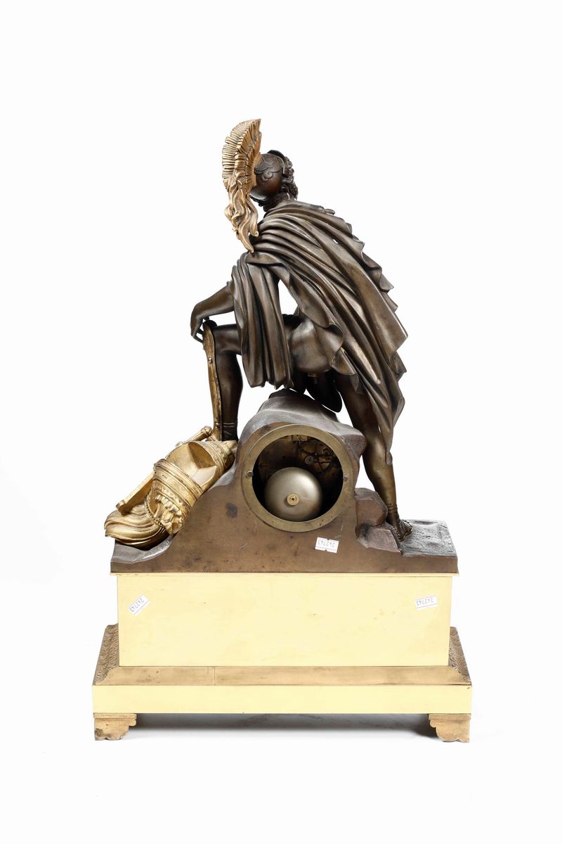 con figura di Marte (?), quadrante smaltato a numerazione romana per le ore