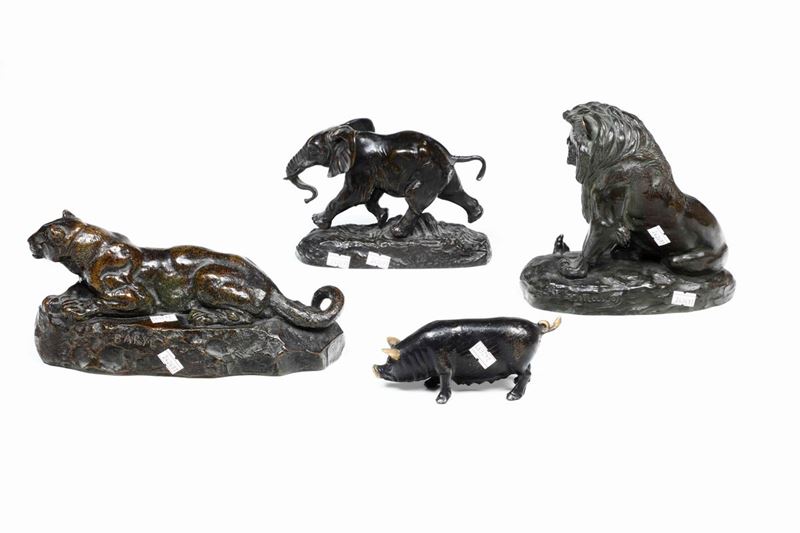 Quattro animali in bronzo firmati C. Masson e Barye, XIX-XX secolo
