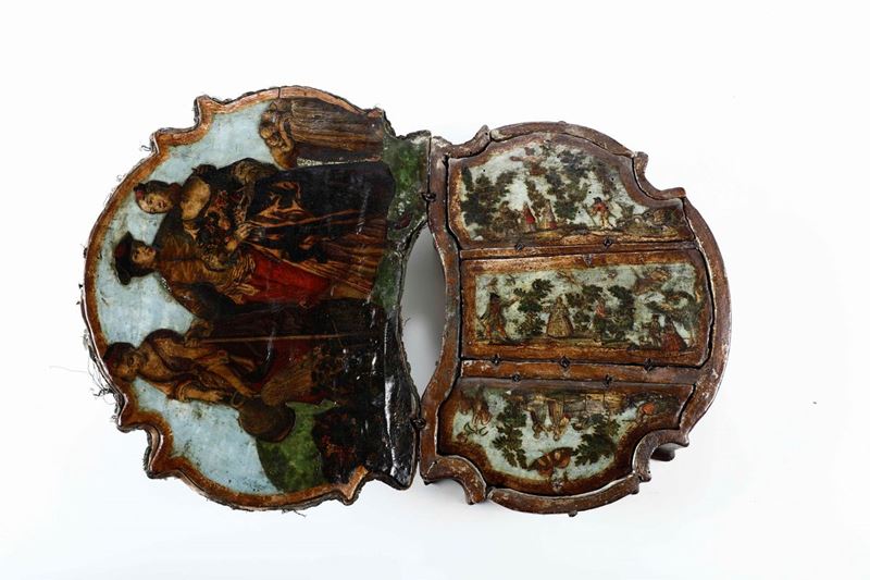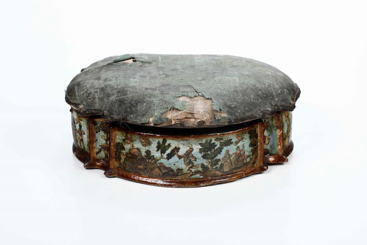 Scatola da cucito in legno laccato e decorato ad arte povera. Arte veneziana, XVIII secolo