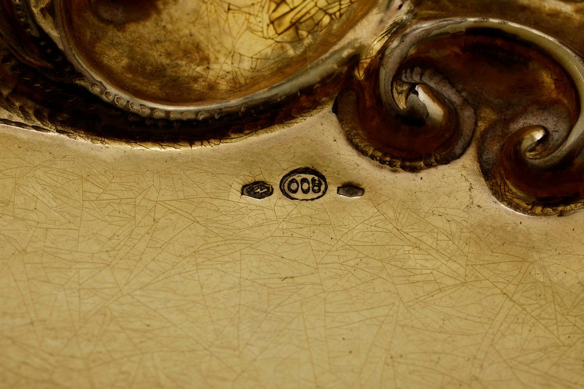 Centrotavola in argento fuso, cesellato e dorato. Argenteria artistica italiana del XX secolo (marchi consunti di difficile [..]