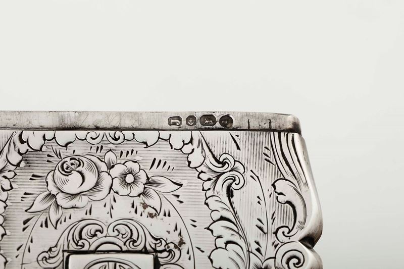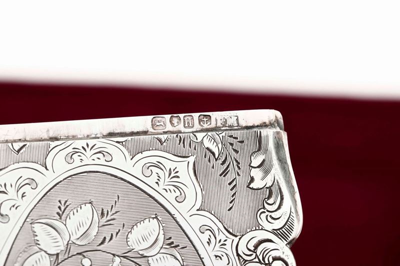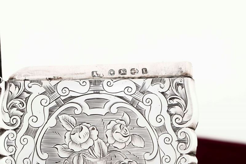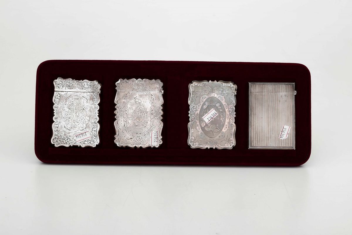 Quattro scatoline porta biglietti in argento cesellato. Marchi della città di Birmingham per il XIX-XX secolo e di differenti [..]