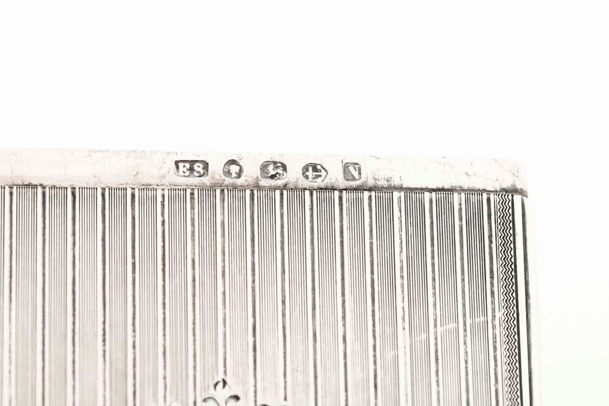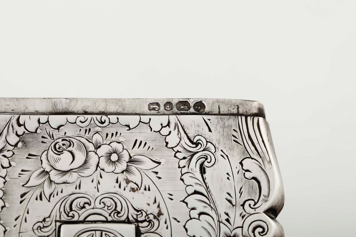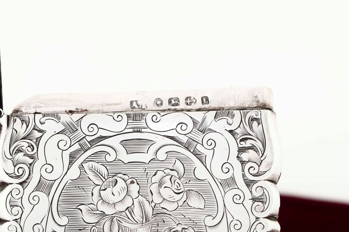 Quattro scatoline porta biglietti in argento cesellato. Marchi della città di Birmingham per il XIX-XX secolo e di differenti argentieri