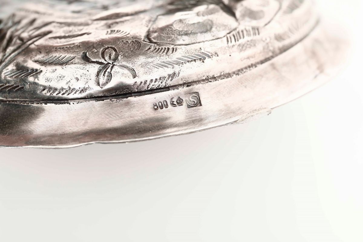 Struzzo in argento fuso, sbalzato e cesellato, argenteria artistica tedesca, inizi XX secolo (Francoforte ditta Simon) (? [..]