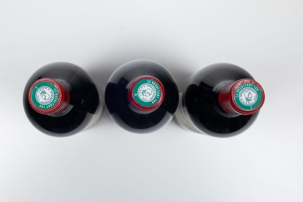 (etichette macchiate e capsule con segni d'usura del tempo)