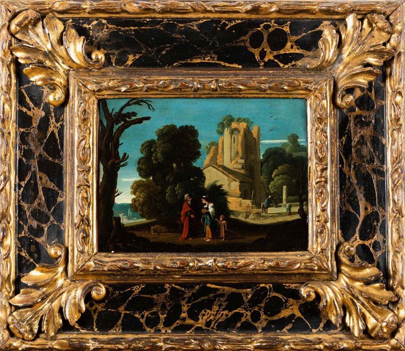 Paesaggio con architetture e contadini