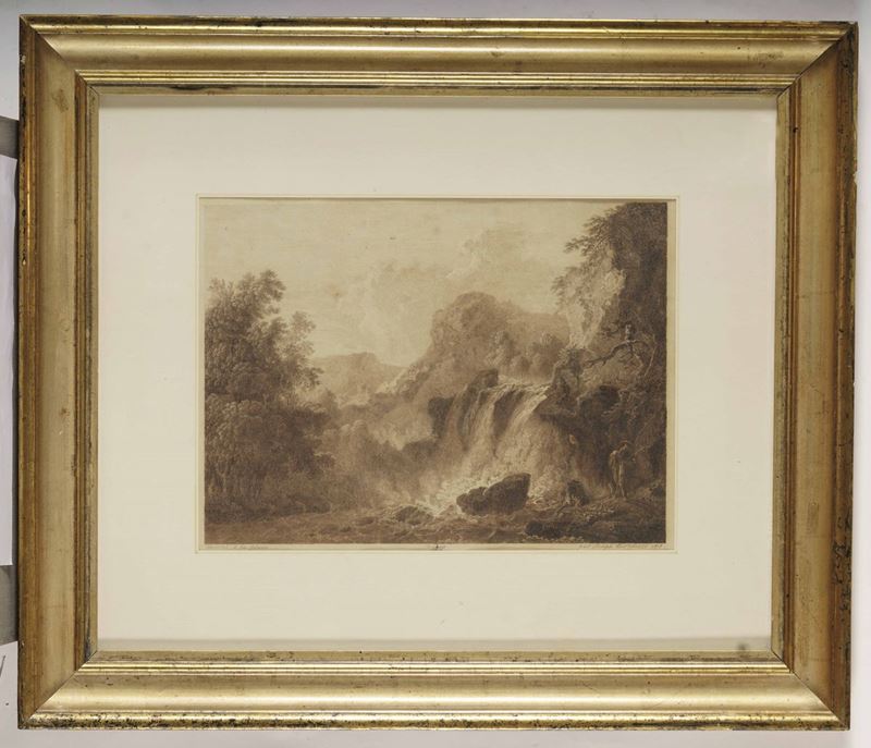 Scuola dell'inizio del XIX secolo Paesaggio montano con figure