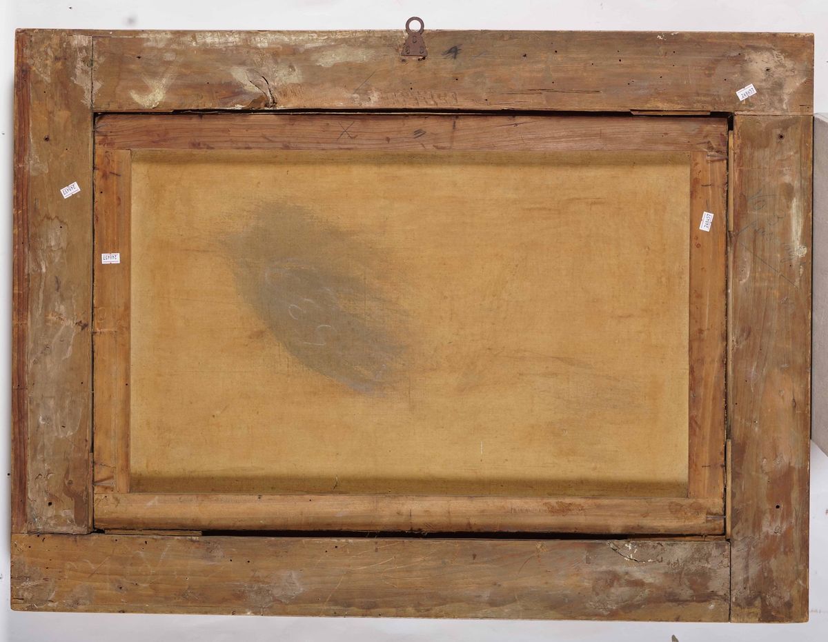 Scuola emiliana del XVIII secolo Paesaggio con ponte e fanciulle in riva al fiume