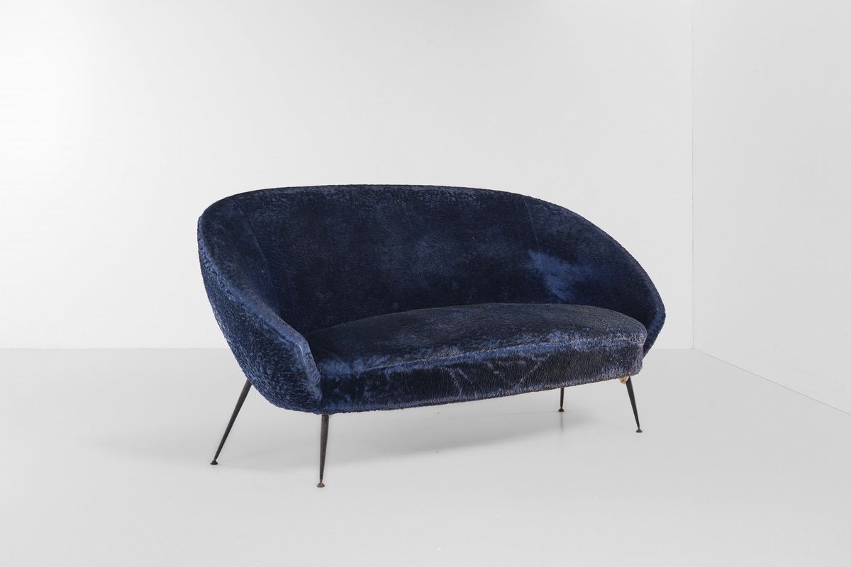Struttura in legno, sostegni in metallo e rivestimenti in tessuto.