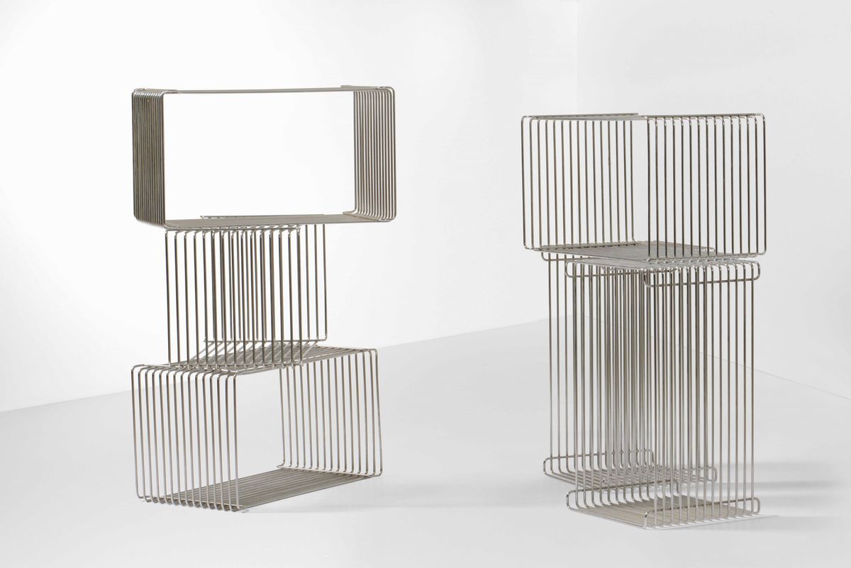 Set di tavoli bassi in metallo tubolare cromato. Prod. Fritz