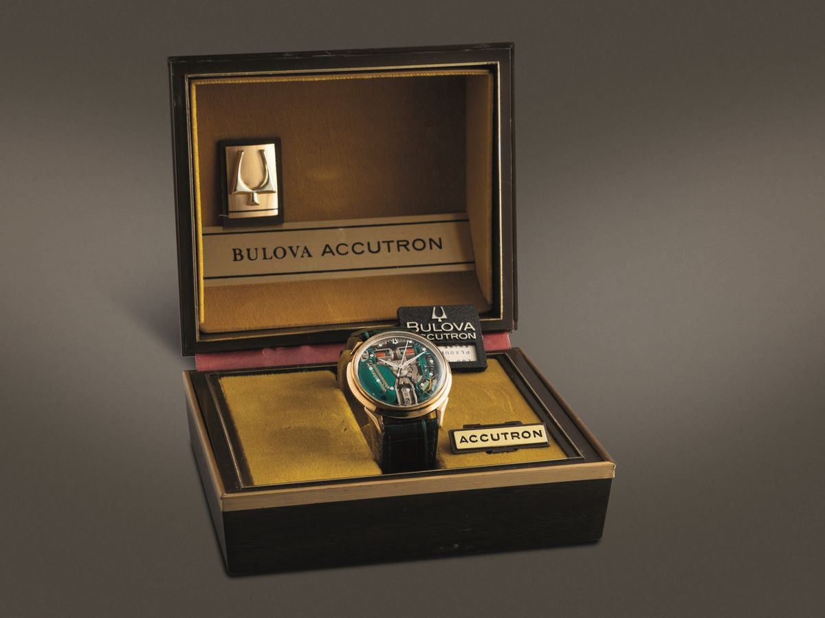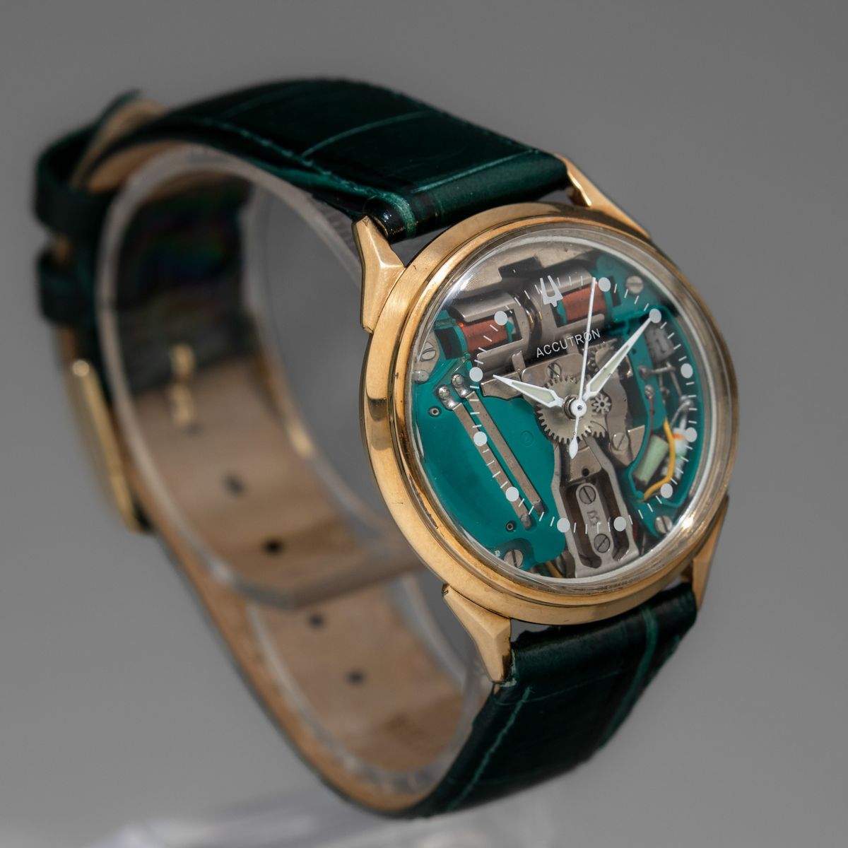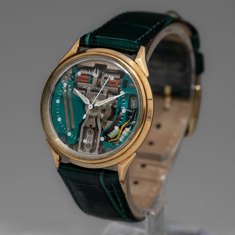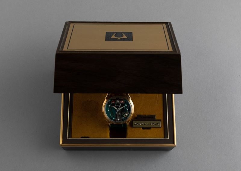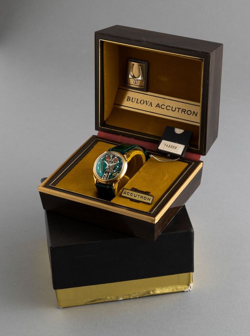 BULOVA - Accutron Spaceview, gold filled 10k con cassa rotonda e anse triangolari. Accompagnato da astuccio originale e [..]