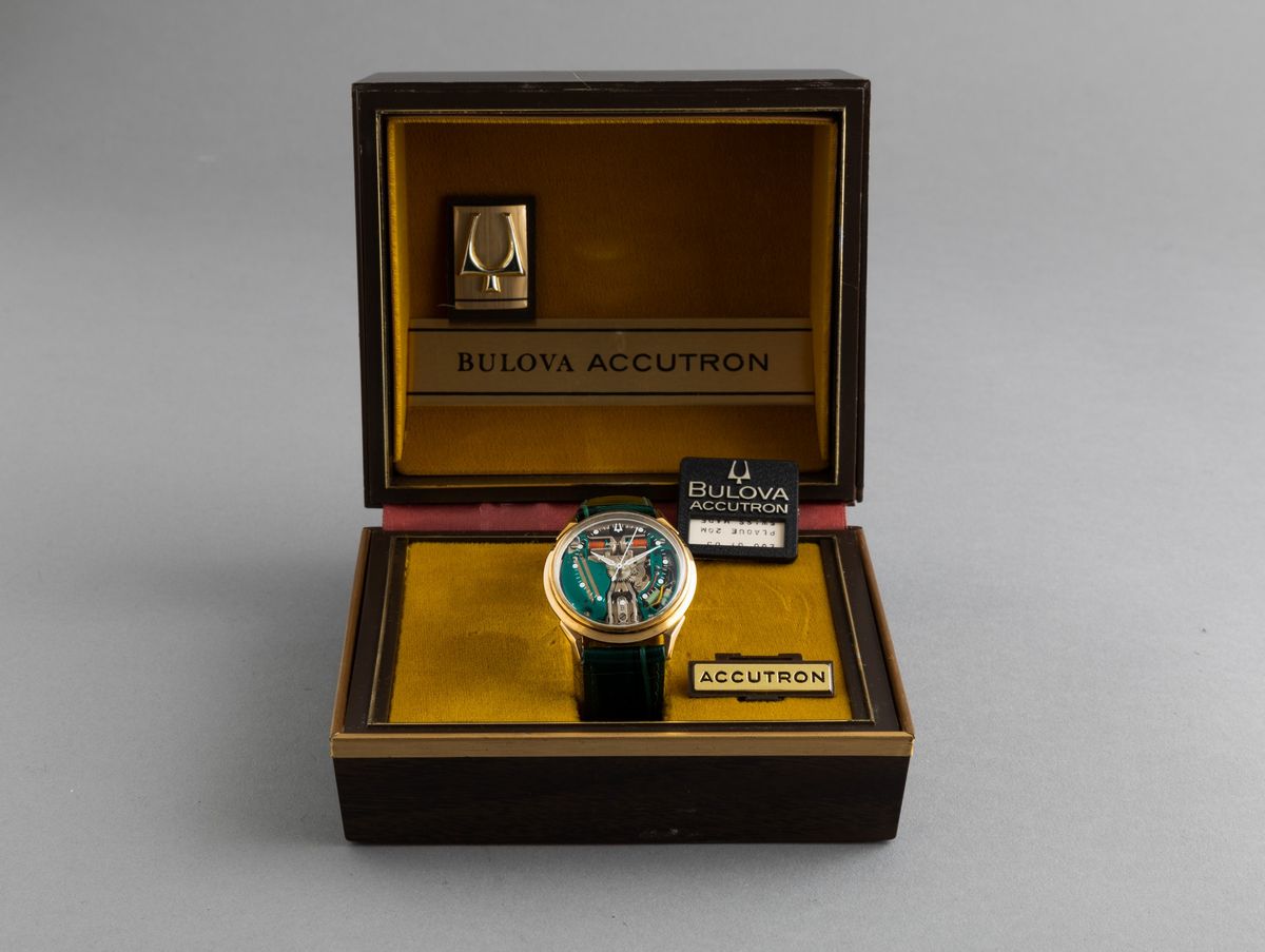 BULOVA - Accutron Spaceview, gold filled 10k con cassa rotonda e anse triangolari. Accompagnato da astuccio originale e tag, "NOS"