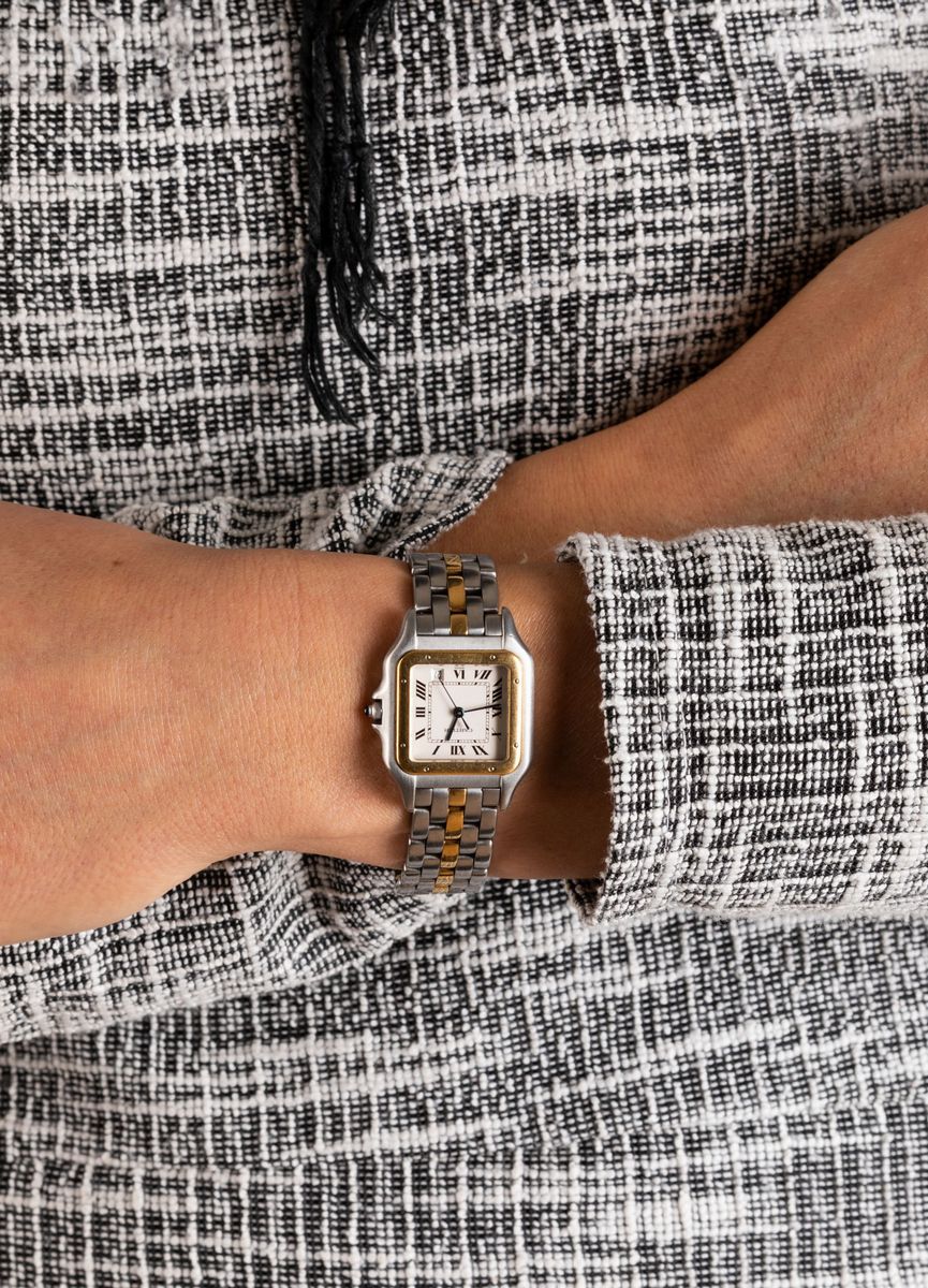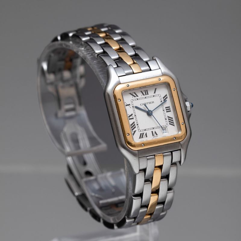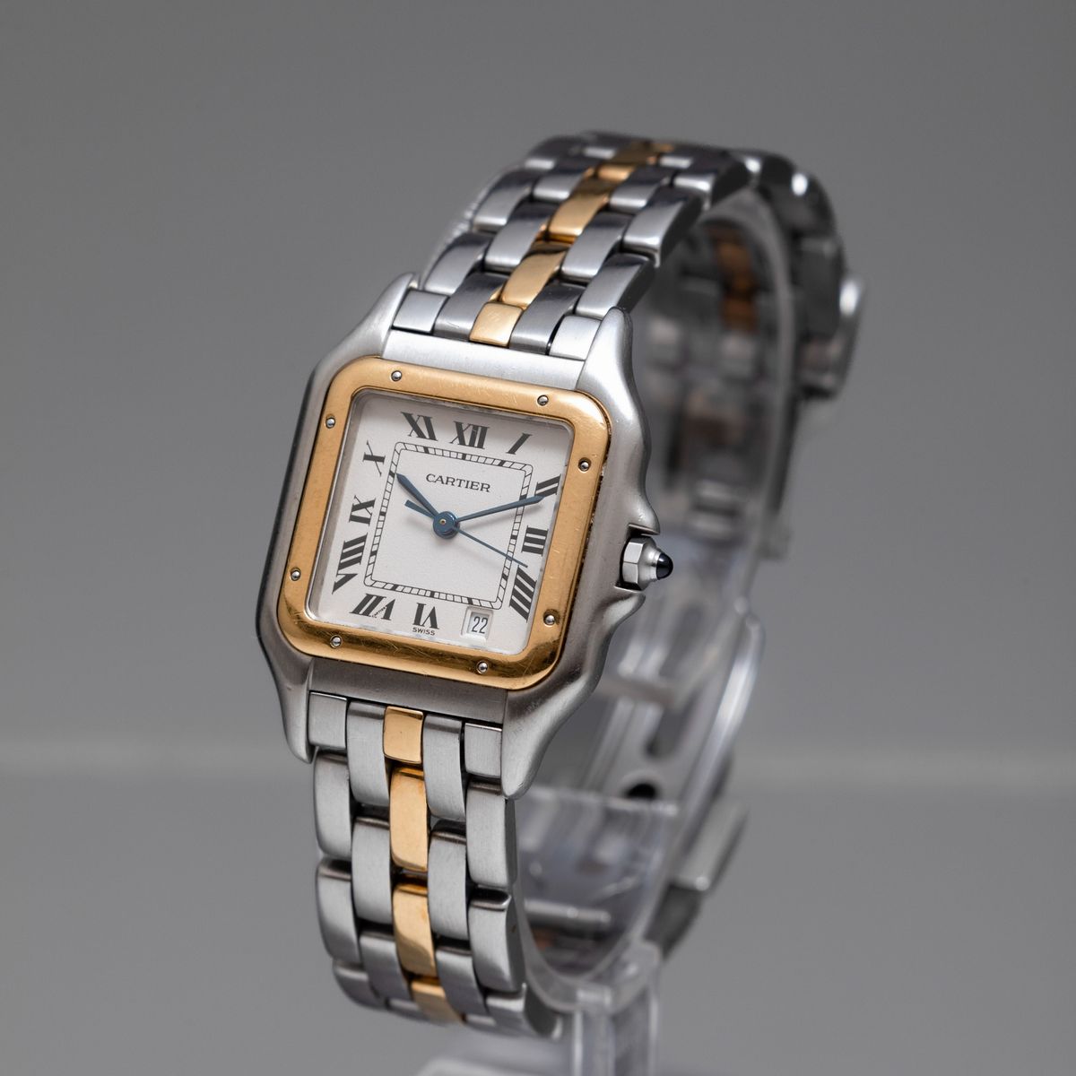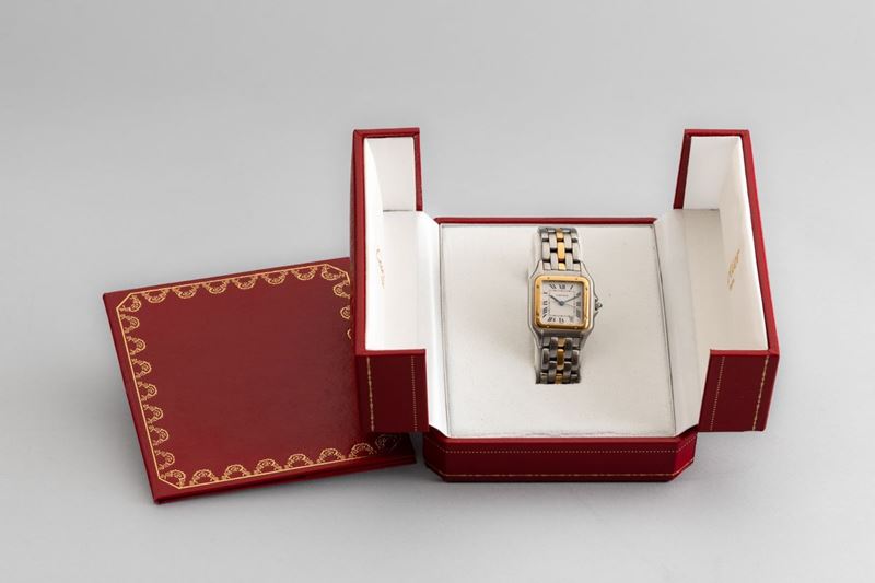 CARTIER - Elegante Panthere acciaio e oro monofilo al quarzo con datario accompagnato da astuccio originale