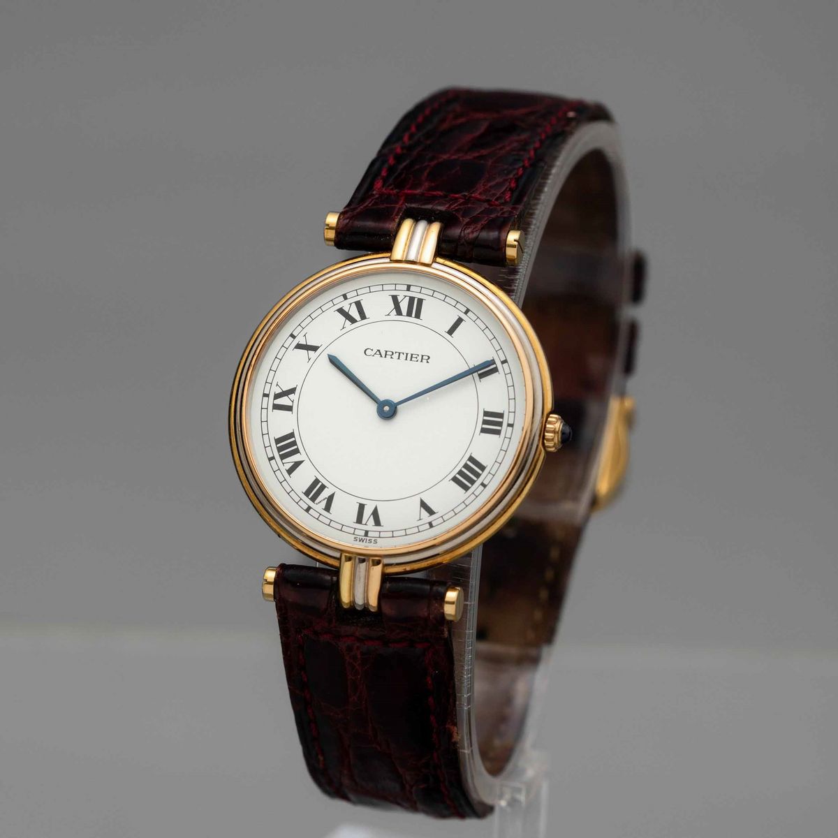 CARTIER - Vendome con cassa tre ori al quarzo, quadrante numeri Romani e cinturino in pelle