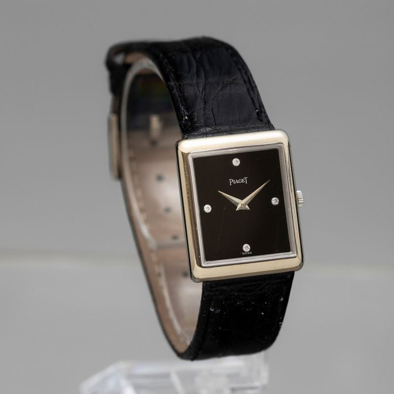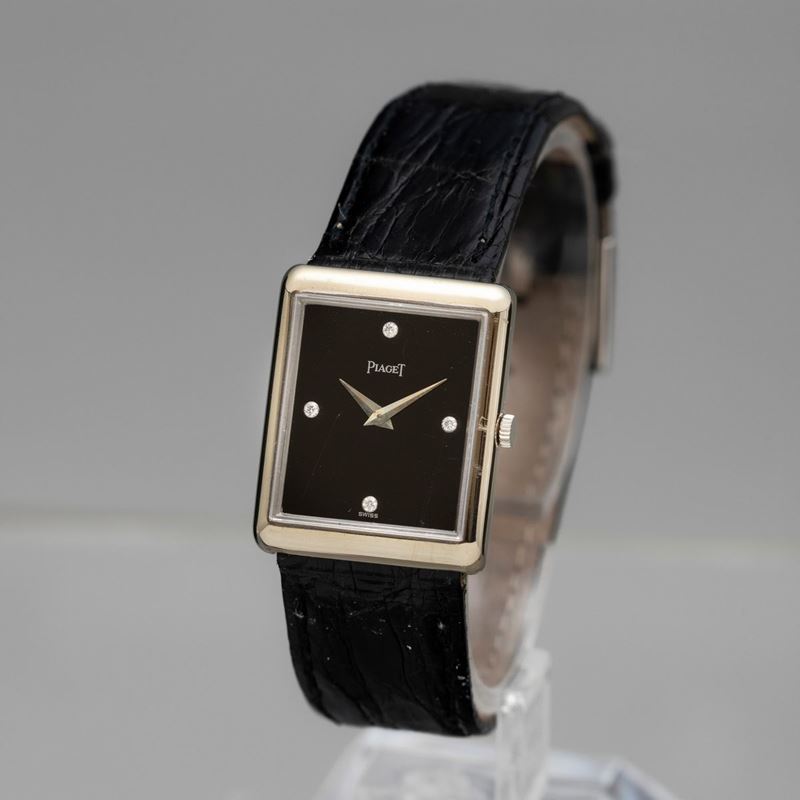 PIAGET - Raro Tank Extraplate carica manuale in oro bianco 18k con quadrante in Onice indici in brillanti